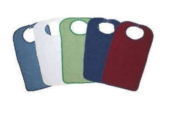 A range of clothing protectors made from toweling. They feature a hook & loop fastening close. Also available with press stud fastenings or a hole for head (poncho).