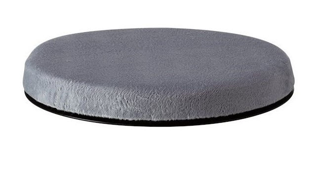 Rotates 360 degrees. Velour grey cover is easily removed for cleaning. Medium density polyurethane foam.